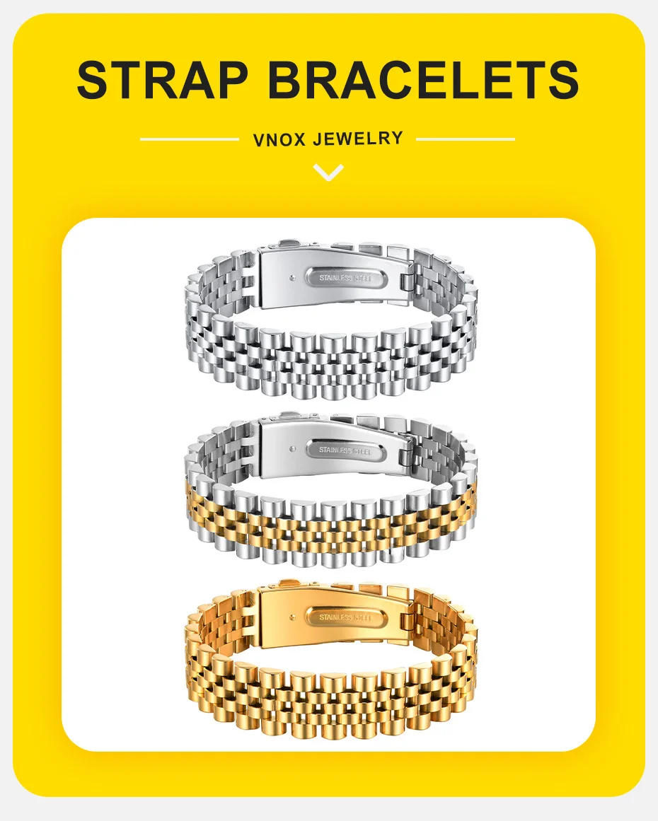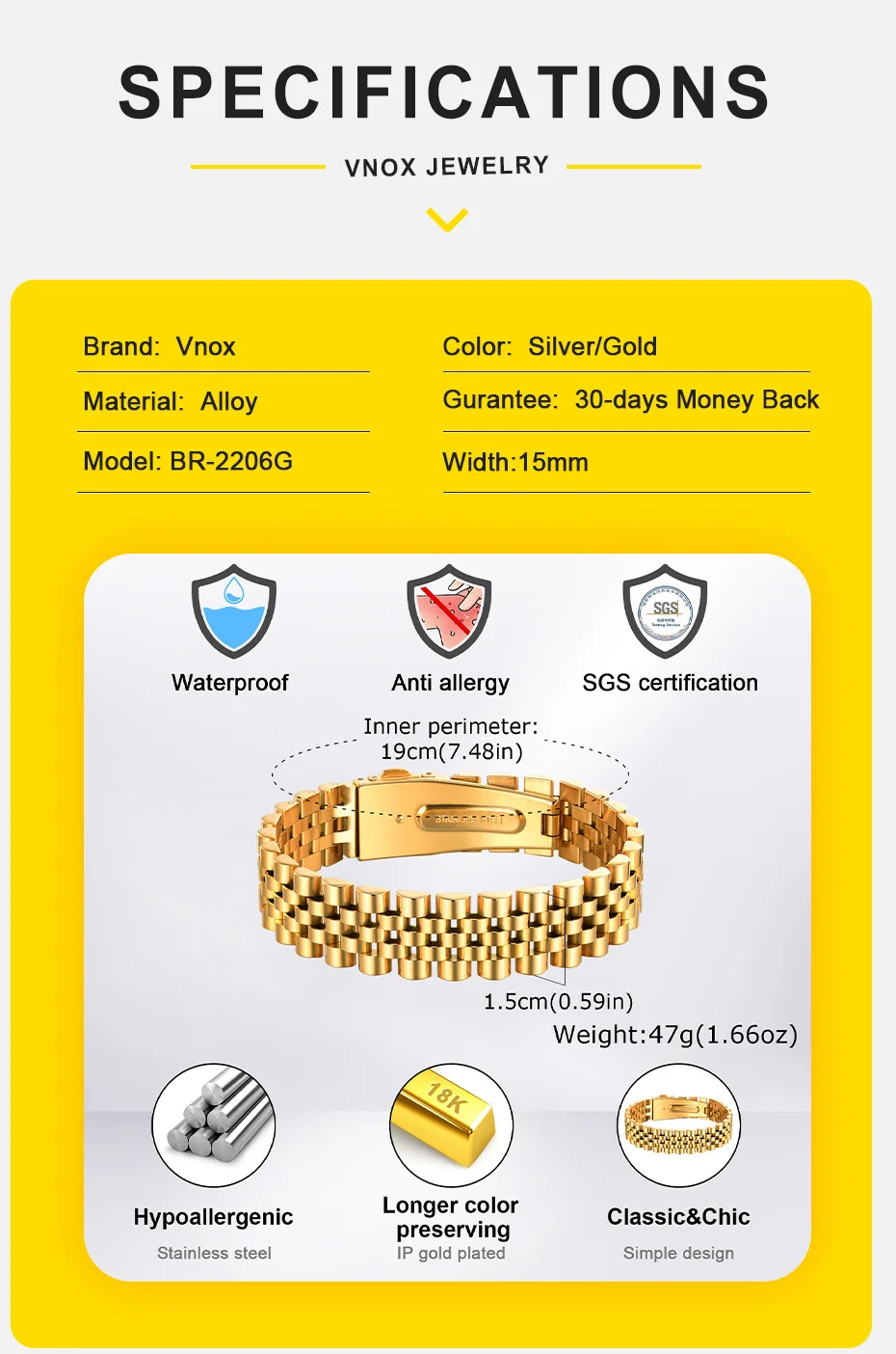 Vnox 15mm Masculine Watch Band Bracelets for Men Husband, Chunky Heavy Stainless Steel Links Wristband, Gentle Business Gift