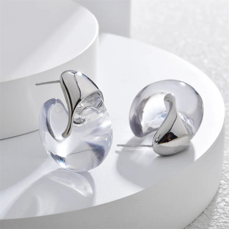 Water Drop Brown Resin Stud Earrings Vintage Dome Copper Gold Plated Earring for Women Girls Teardrop Ear Cuffs